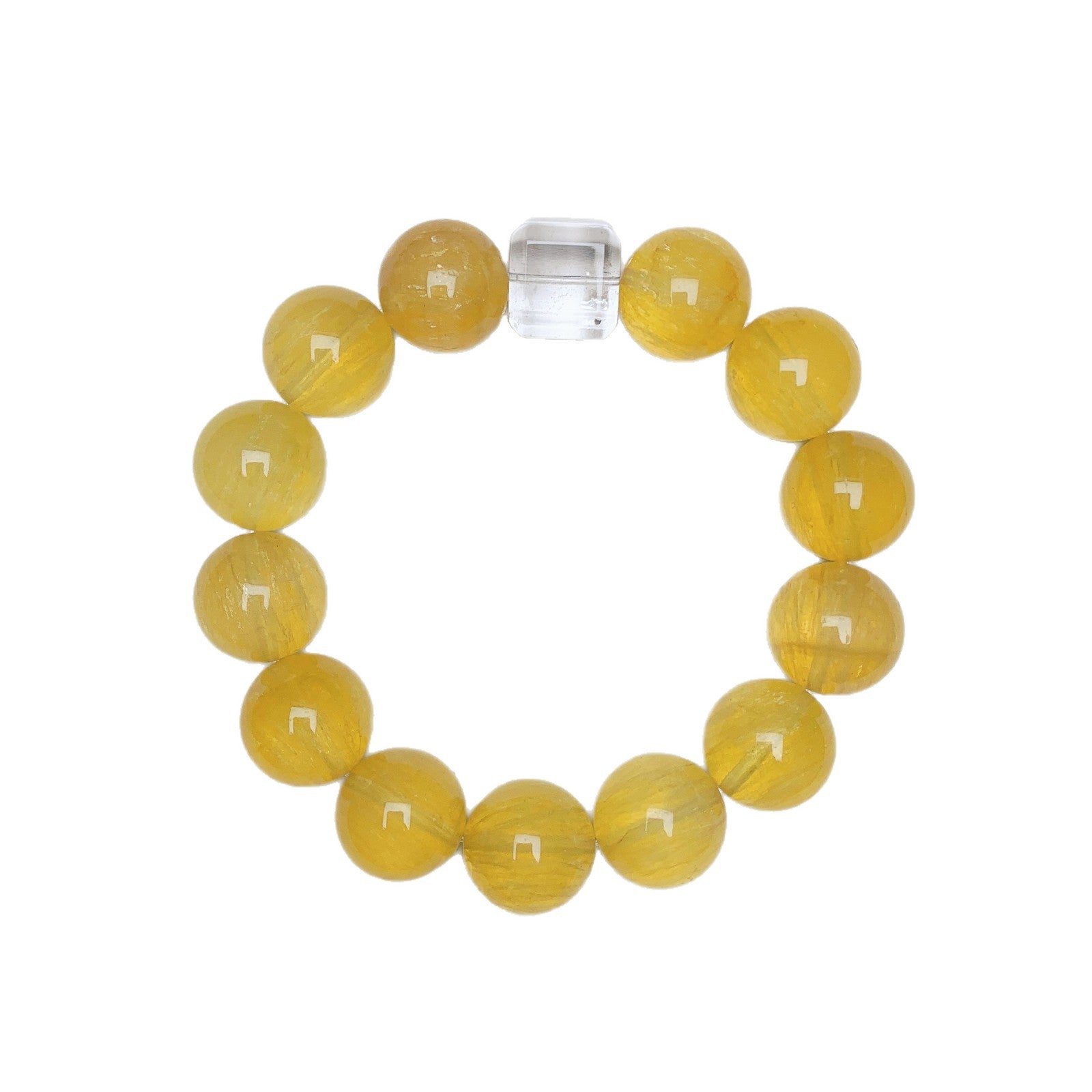"Warmth of the afternoon sun, captured in stone." The "Golden Silk" bracelet is a tribute to clarity and abundance. Featuring rare Yellow Fluorite with a unique silky chatoyancy, each bead shimmers with a soft, inner glow, reminiscent of sunlight filtering through fine silk thread.
