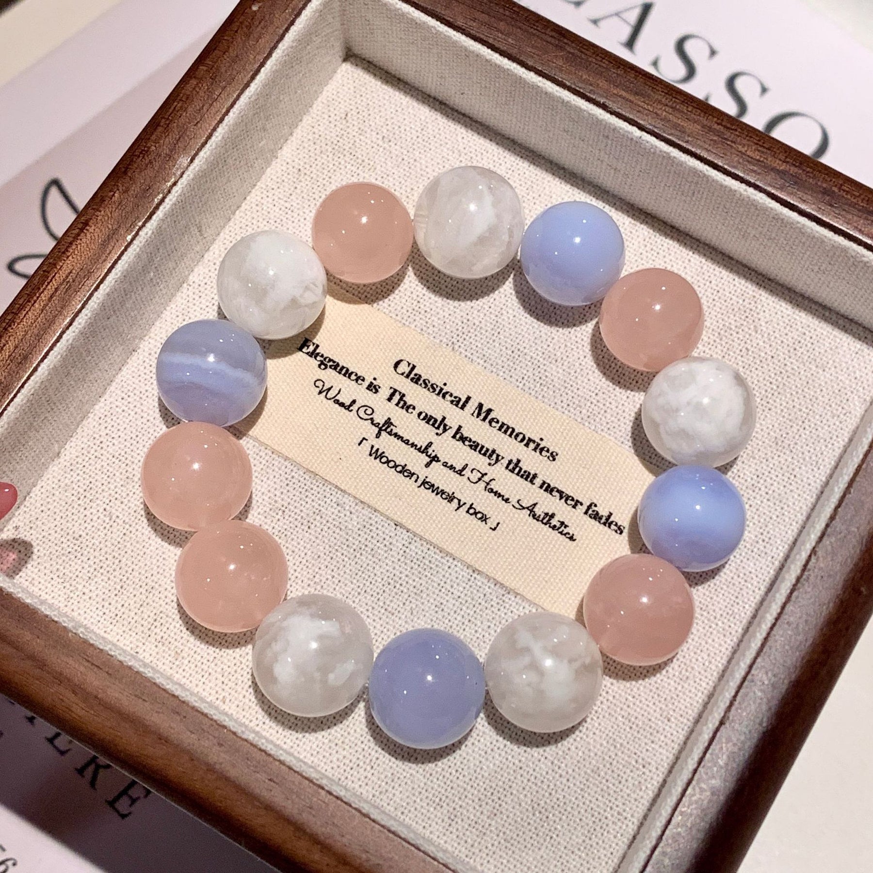 Artisan Feel: Hand-strung with attention to color balance, ensuring a harmonious flow of white and blue.